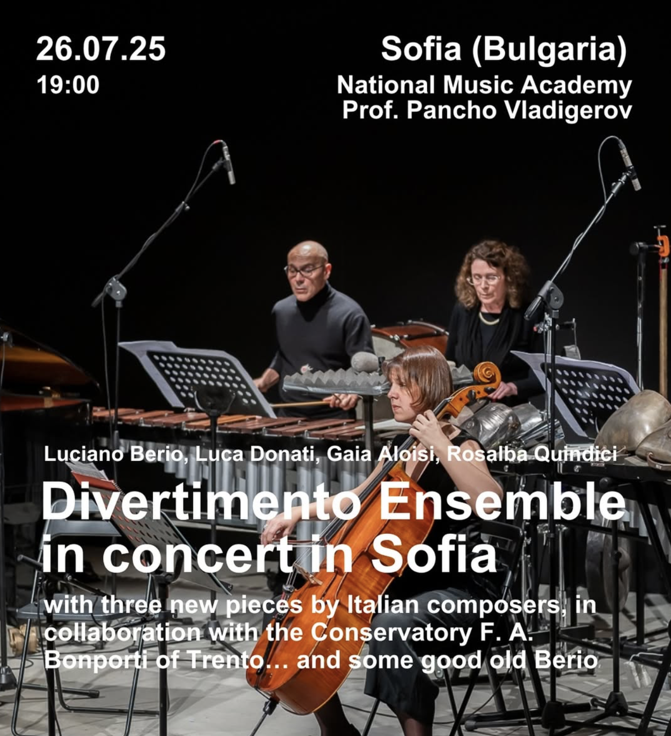 The concert will be held in the National Academy of Music “Prof. Pancho Vladigerov” (Oborishte, Evlogi i Hristo Georgiev Blvd 94, 1505 Sofia, Bulgaria) at 19:00 EEST (UTC+3).